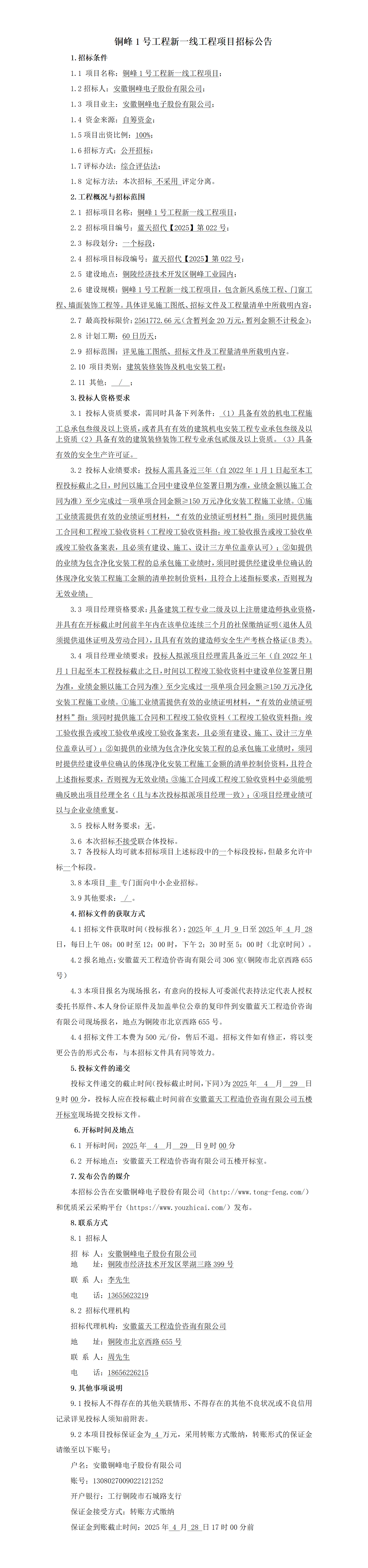 鍍膜輔助設備動力配電柜招標公告(補錄)