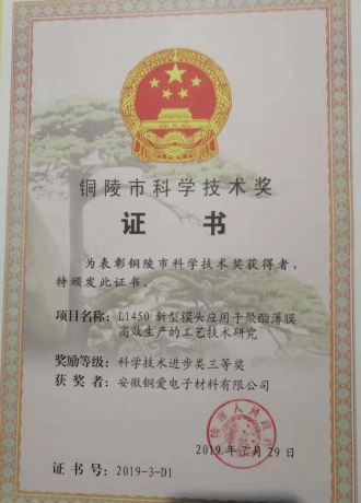 銅陵市科學(xué)技術(shù)三等獎(jiǎng)