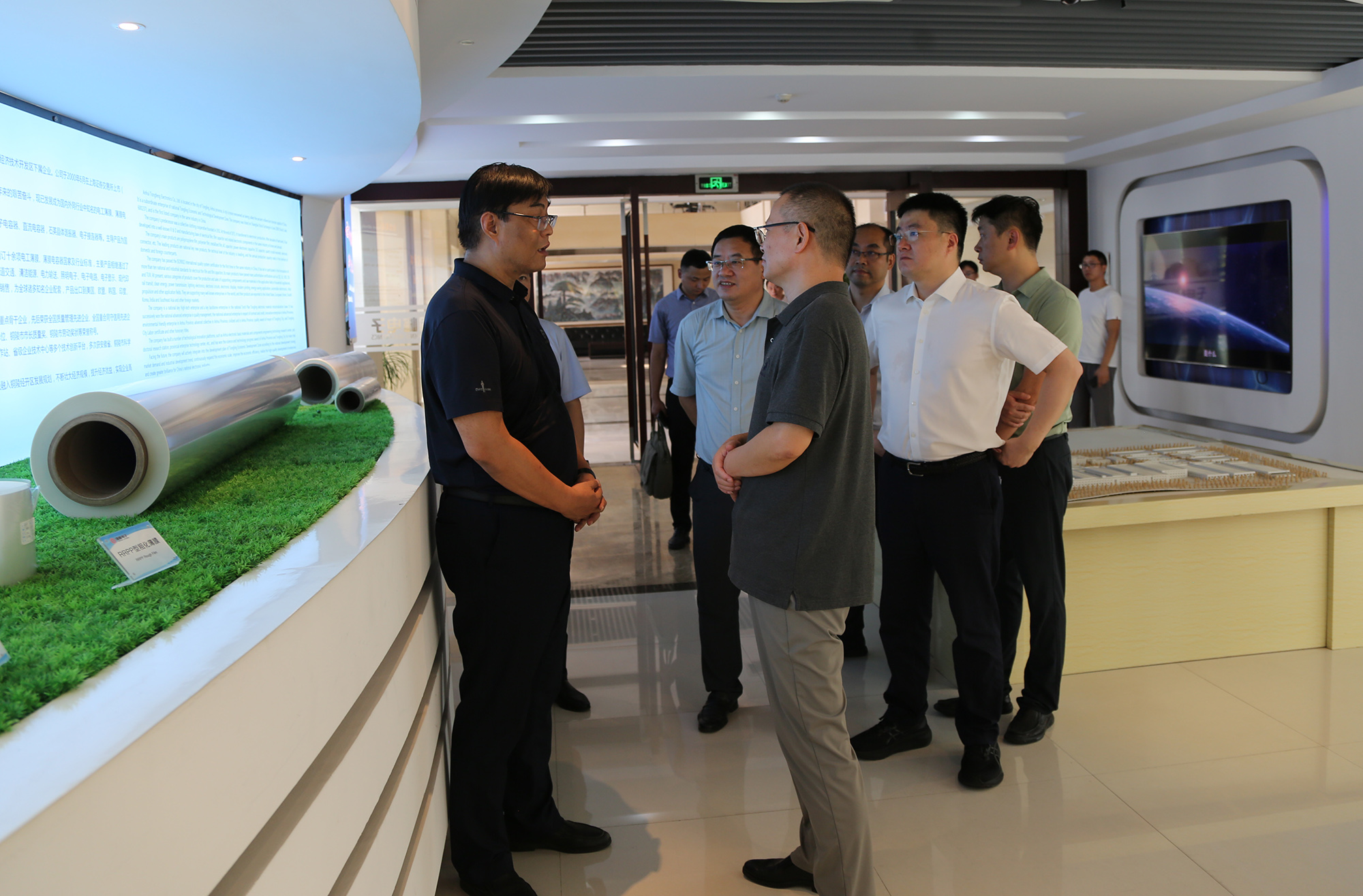 吳強深入宣講黨的二十屆三中全會精神和習(xí)近平總書記關(guān)于科技創(chuàng)新的重要論述,并參觀了企業(yè)展廳和銅愛公司生產(chǎn)車間。公司負(fù)責(zé)人向吳強一行介紹了企業(yè)生產(chǎn)經(jīng)營、項目建設(shè)、技術(shù)創(chuàng)新、人才培養(yǎng)等工作情況,并重點匯報了國家級博士后工作站、省重點實驗室等創(chuàng)新平臺建設(shè)、產(chǎn)業(yè)鏈協(xié)同創(chuàng)新項目推進、新能源汽車電容器和復(fù)合集流體用基膜等重點新產(chǎn)品研發(fā)、推廣的進展和成效。