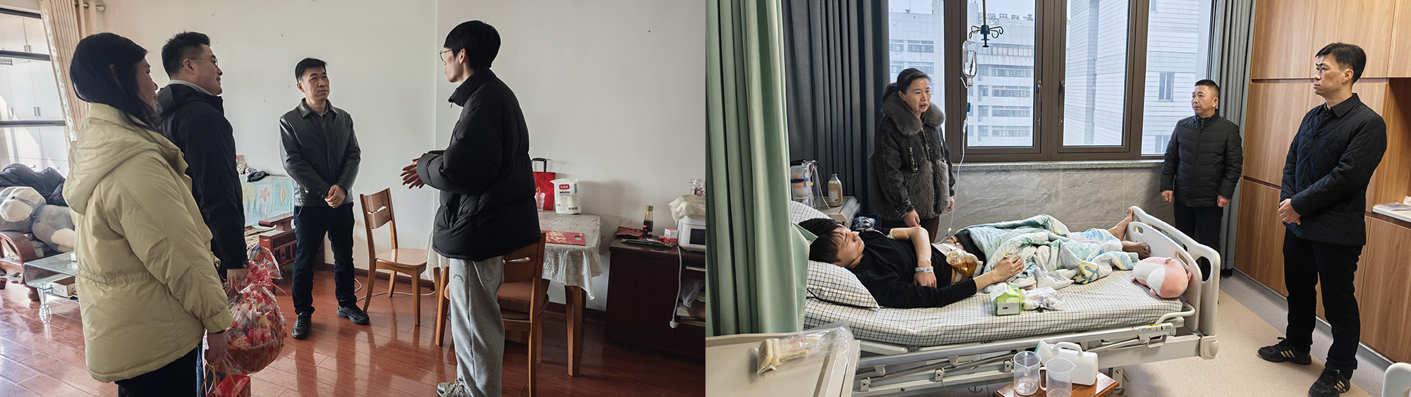 在醫(yī)院病房,公司領(lǐng)導(dǎo)還看望患病住院的困難職工,并送上慰問(wèn)金。公司領(lǐng)導(dǎo)關(guān)切詢問(wèn)患者的病情、治療進(jìn)展以及目前身體狀況,叮囑患者要安心養(yǎng)病,放寬心態(tài),積極配合治療,爭(zhēng)取早日康復(fù)。